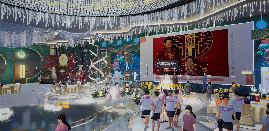 同時,區(qū)別于普通線上婚禮的單維化、平面化及靜態(tài)化的呈現(xiàn)形式,《MetaLove元囍》將從空間場景、虛擬布景、圖像效果等多角度還原復(fù)刻婚禮現(xiàn)場,凸顯婚禮的現(xiàn)場感和動態(tài)感;